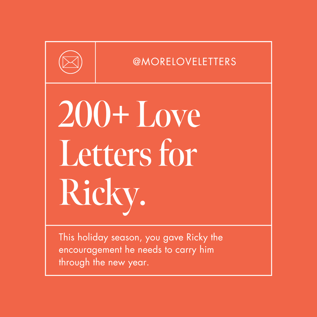 As a part of the 12 Days of Love Letters, we shared Ricky’s story with you, asking you to encourage him as he works hard to create a life in which he is flourishing."
