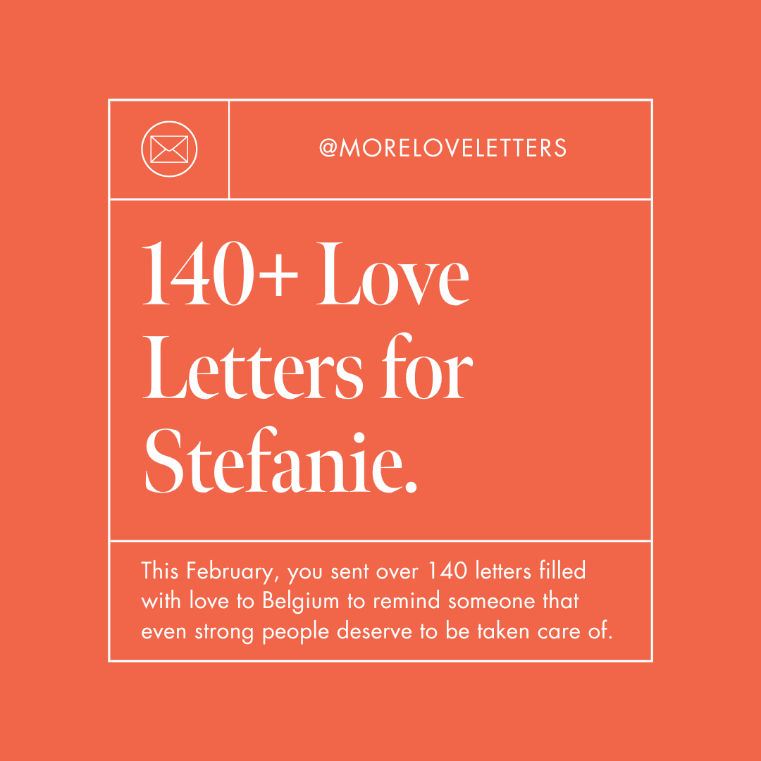 This February, you sent over 140 letters filled with love to Belgium to remind someone that even strong people deserve to be taken care of.