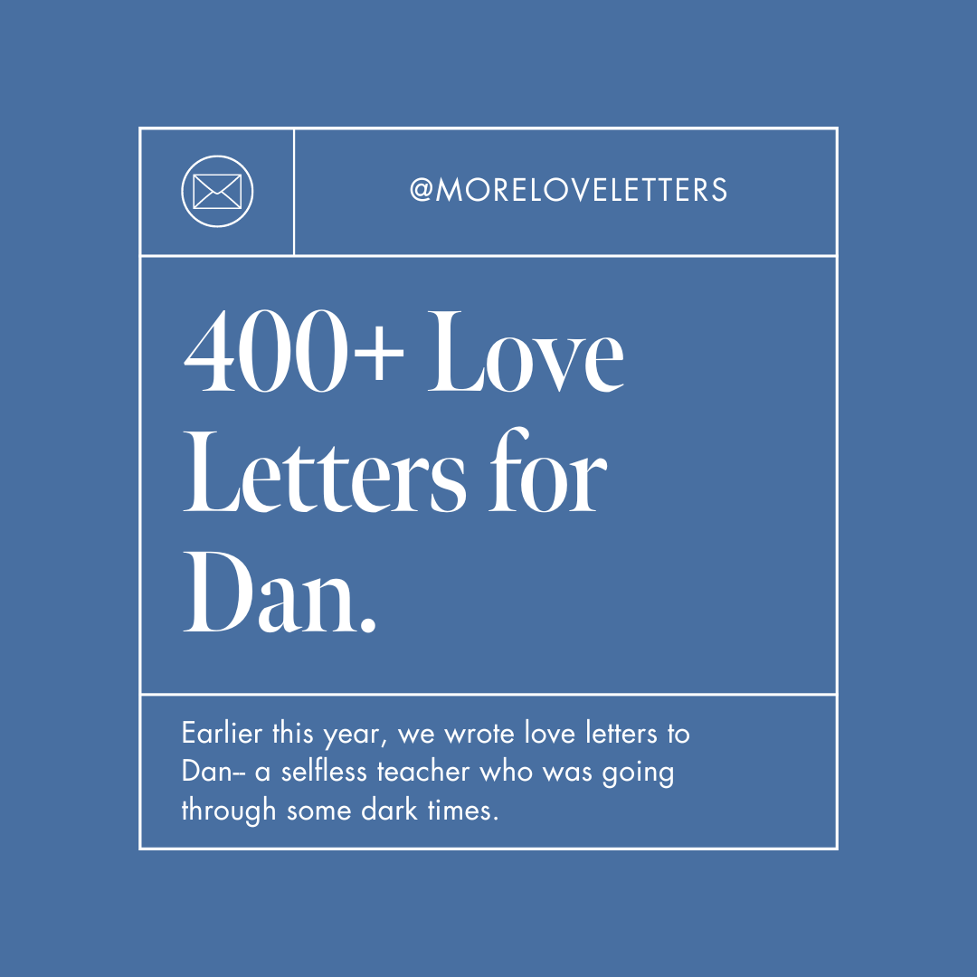 Earlier this year, we wrote love letters to Dan-- a selfless teacher who was going through some dark times. Dan's loved one wrote to us in her nomination, "I've been searching for ways to show him how very much he means to me, and to all of the kids whose lives he touches. Please, help me do just that. If ever a man there was who deserved 300 letters filled with love on one day, it would be him, hands down."